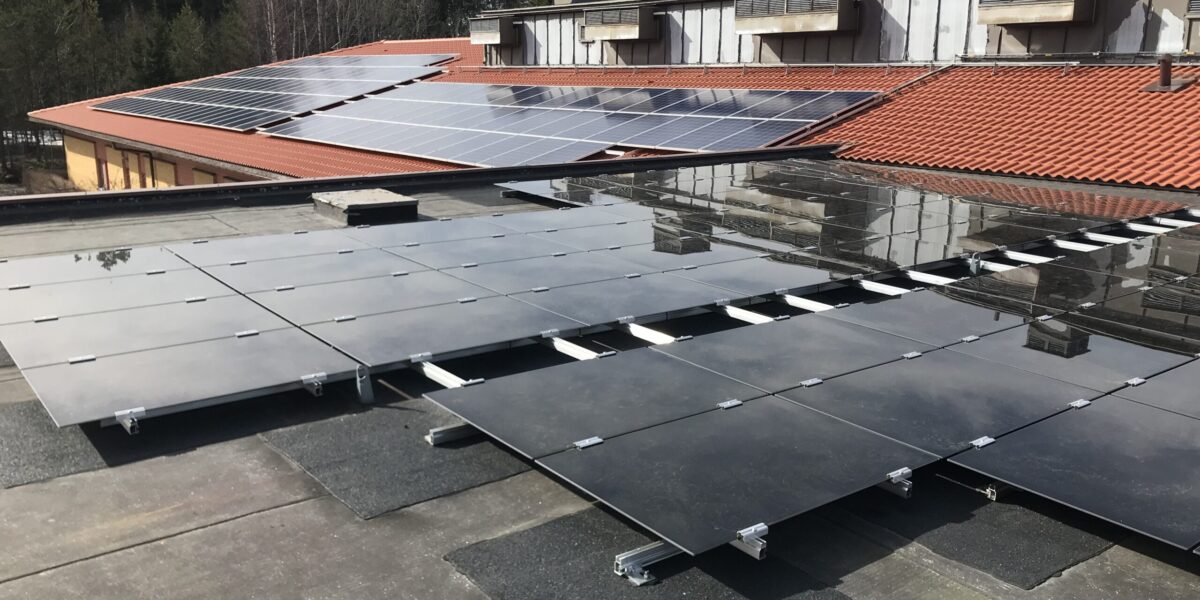 Tunnfilmssolcellerna omfattar 12 kWp installerad effekt och resterande polykristallina solceller står för 240 kWp installerad effekt.